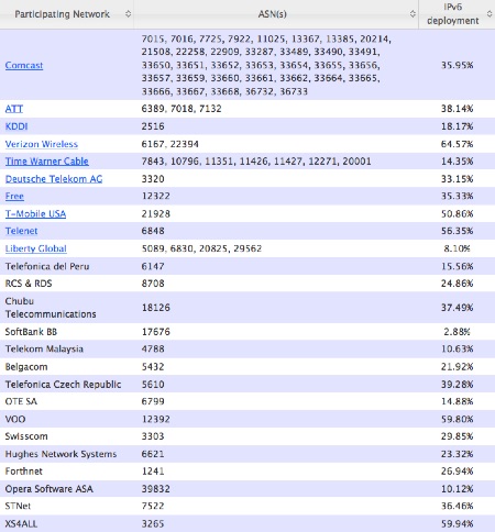 They join fellow North American wireless carrier Verizon Wireless who has been in the “over 50% IPv6” club for a while now and this month is right at the 65% mark (64.57% if you want to be precise):