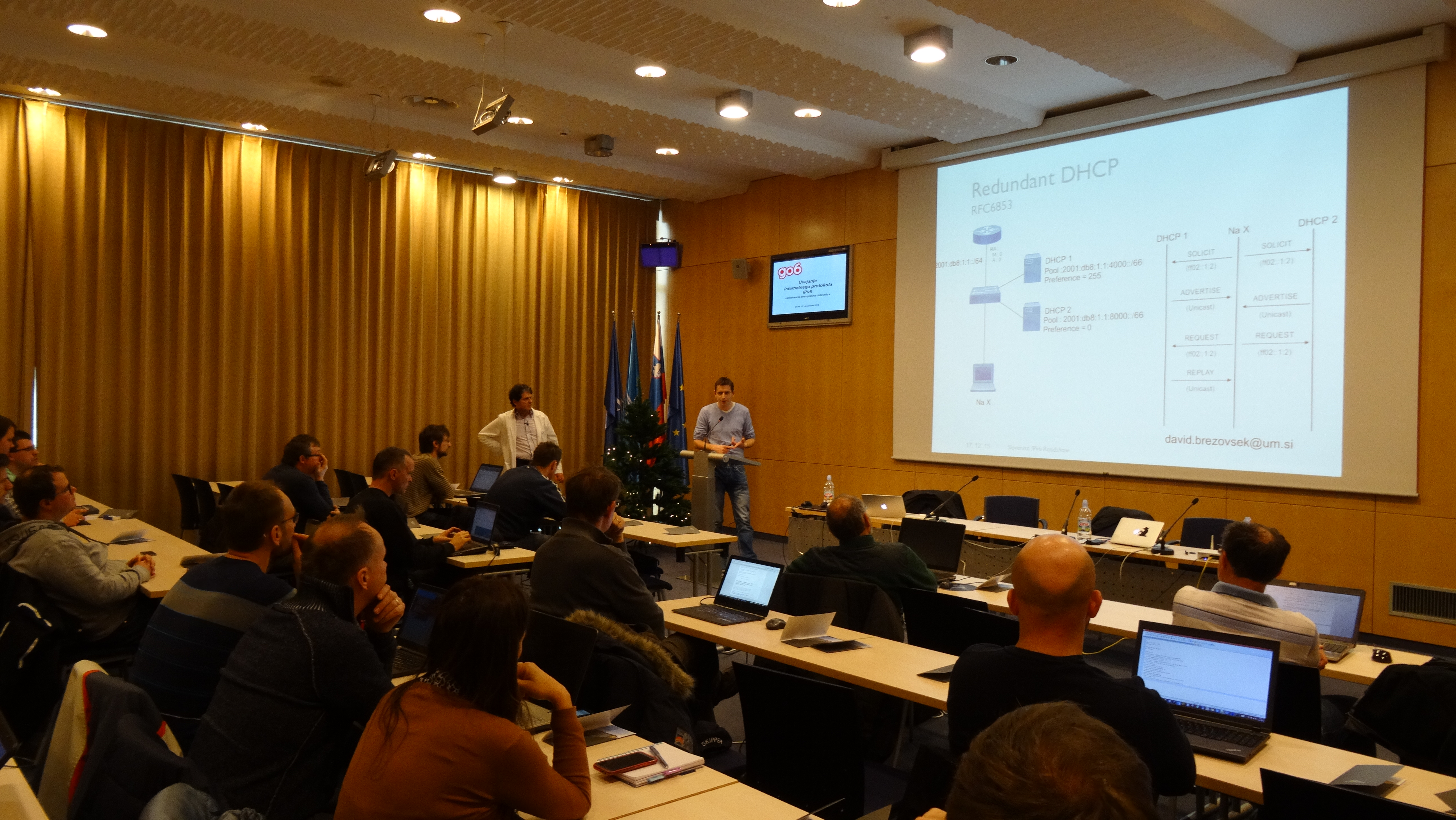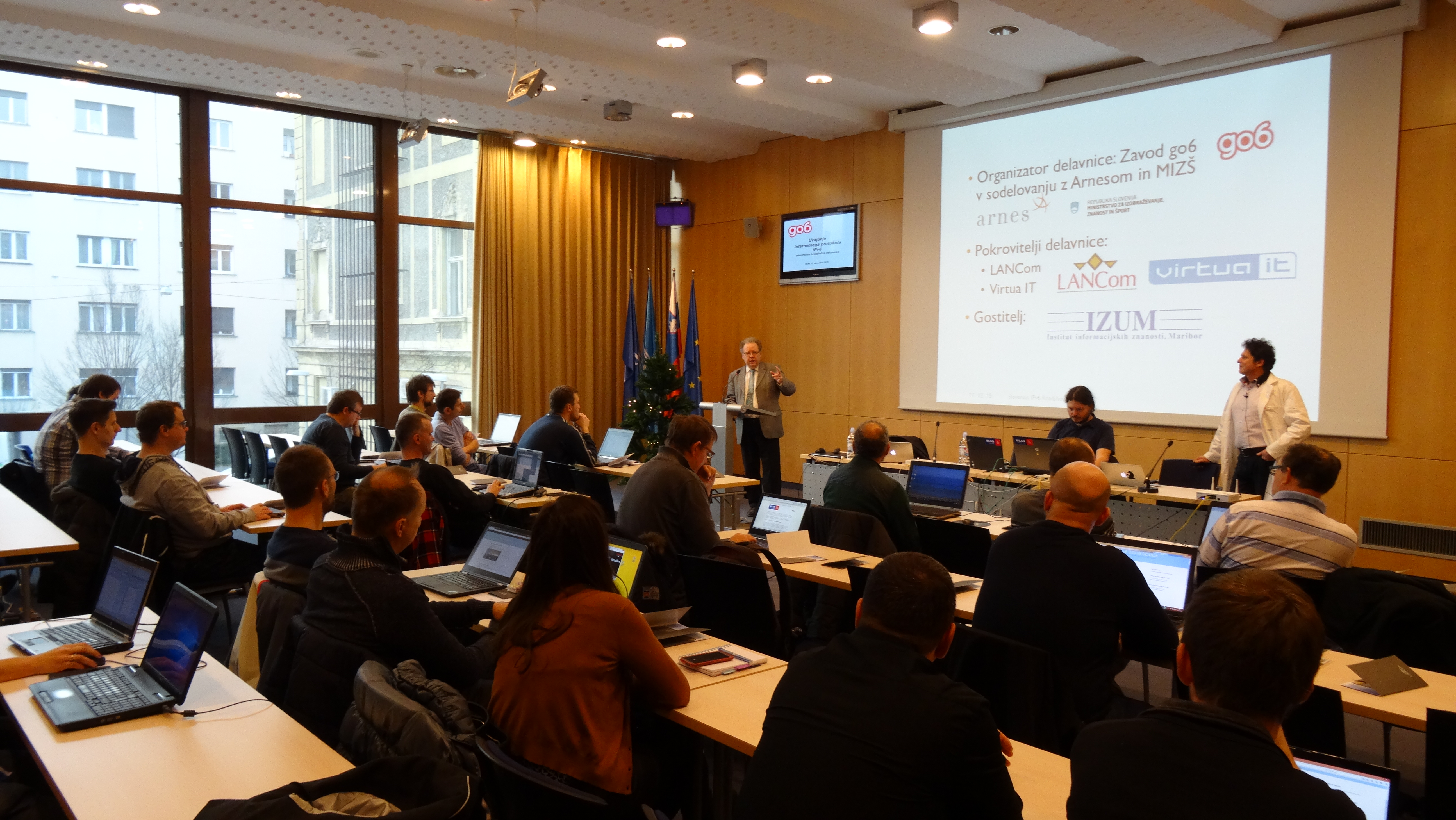 The two IPv6 workshops took place this week on 15 December 2015 in Nova Gorica, and 17 December 2015 in Maribor. The first had over 80 participants, whilst the second had around 40 participants, so both can be considered a great success. Arnes also recorded the proceedings of the Maribor workshop which will appear on https://ipv6.si/ shortly.