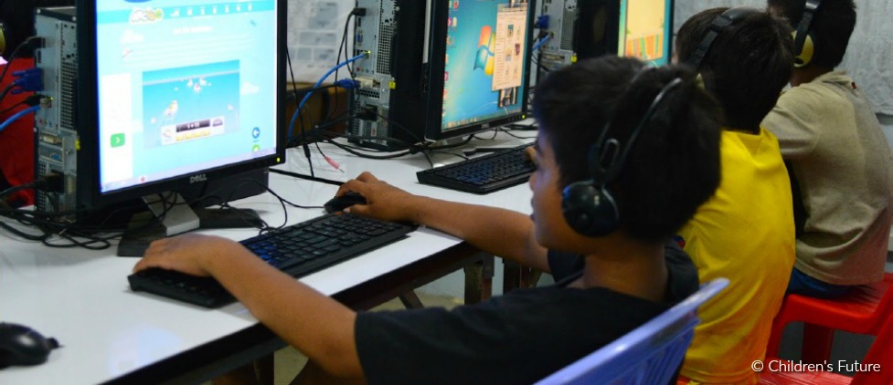 *Student’s name changed in accordance with Children’s Future’s Child Protection Policy Students practice their computer skills in the Learning Center computer lab Students play games to take a break from their studies