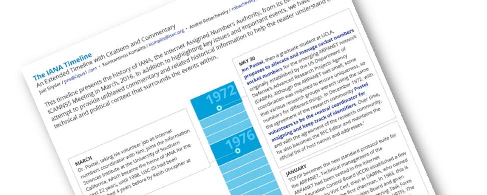 In March 2014 the U.S. government announced that it might be willing to relinquish control over what had been an obscure Internet coordination function. Since then the Internet Assigned Numbers Authority (the once obscure Internet coordination function) has taken on a persona far greater than it actually warrants. In presenting the history of the IANA and a clear description of its actual role in the Internet, the Internet Society is making it more likely that the discussion of the U.S. government’s current and future roles in managing the Internet will be based on facts rather than speculation symbolism.
