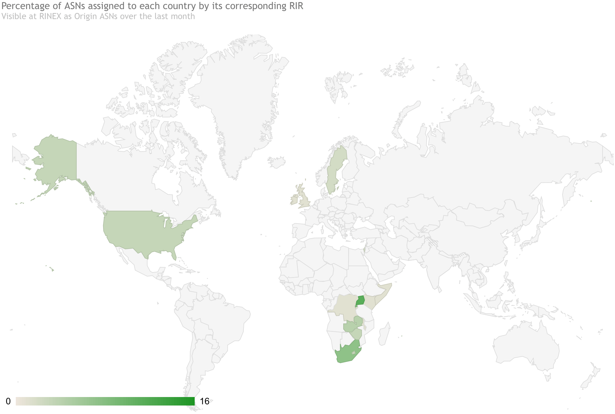 Fig. 1: Number/Percentage of ASNs by country assignment at TIX