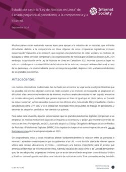 Internet Society analizó los impactos de la Ley de Noticias en Línea de Canadá tanto sobre Internet como sobre las personas y las empresas que dependen de su promesa de conectividad global. Con base en nuestros hallazgos, este documento ofrece recomendaciones sobre cómo los países pueden desarrollar leyes que apoyen la sostenibilidad de la industria de las noticias sin perjudicar a Internet.