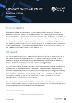 Durante décadas, el proceso abierto y colaborativo de desarrollo de estándares ha impulsado el notable crecimiento de Internet y ha permitido una plataforma para la innovación global. Sin embargo, el futuro de este crecimiento no está garantizado. Desafíos que van desde el aumento de los sistemas propietarios hasta la falta de reconocimiento gubernamental amenazan con ralentizar la innovación e inhibir el pleno potencial de Internet. Al promover activamente los estándares abiertos y reconocerlos formalmente en las políticas públicas, podemos proteger los componentes básicos que habilitan la interoperabilidad, la compatibilidad y la coherencia entre redes, países y mercados, para asegurar que Internet siga siendo un recurso dinámico, interoperable y abierto para el mundo entero.