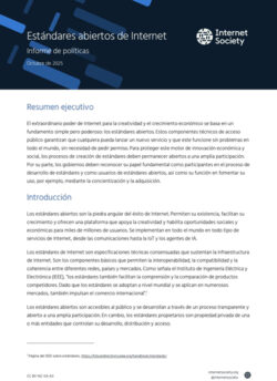 Durante décadas, el proceso abierto y colaborativo de desarrollo de estándares ha impulsado el notable crecimiento de Internet y ha permitido una plataforma para la innovación global. Sin embargo, el futuro de este crecimiento no está garantizado. Desafíos que van desde el aumento de los sistemas propietarios hasta la falta de reconocimiento gubernamental amenazan con ralentizar la innovación e inhibir el pleno potencial de Internet. Al promover activamente los estándares abiertos y reconocerlos formalmente en las políticas públicas, podemos proteger los componentes básicos que habilitan la interoperabilidad, la compatibilidad y la coherencia entre redes, países y mercados, para asegurar que Internet siga siendo un recurso dinámico, interoperable y abierto para el mundo entero.