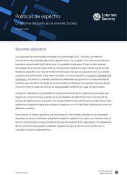 Las soluciones de conectividad centradas en la comunidad (CCC) —es decir, las redes de comunicación de propiedad, operación y gestión local—han surgido como vehículos poderosos para llevar conectividad significativa a las comunidades marginadas. Si bien existen diversas tecnologías de acceso de última milla, la comunicación inalámbrica sigue siendo una de las más flexibles y asequibles a la hora de brindar conectividad. Para que las soluciones de CCC cumplan su potencial transformador, estas redes necesitan un acceso equitativo al espectro radioeléctrico inalámbrico. Sin políticas y medidas regulatorias deliberadas que garanticen la disponibilidad de espectro para iniciativas centradas en la comunidad, los esfuerzos por expandir el acceso digital inclusivo corren el riesgo de reforzar las desigualdades existentes en lugar de solucionarlas.