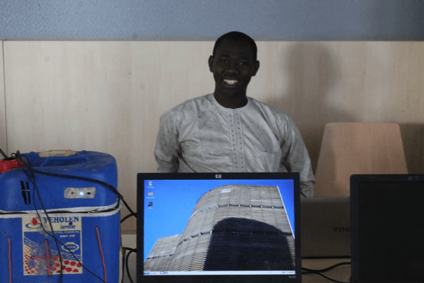 Abdeldjelil Bachar Bong devant un Jerry dédié à OSM Tchad photo: (Imrane Ahmat Souleymane)