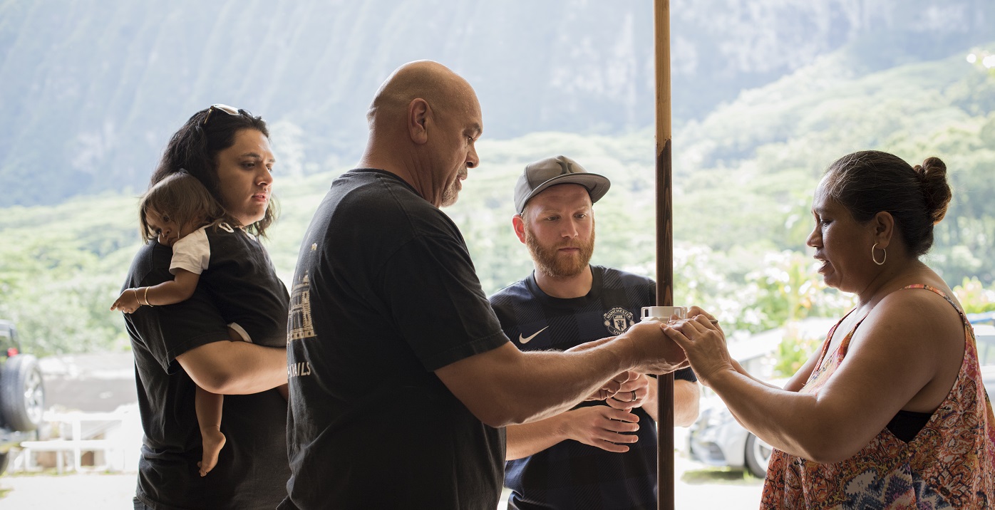 Les membres de la communauté de Pu’uhonua O Waimanalo collaborent avec l’Internet Society pour apprendre à utiliser et à installer l’Internet pendant la session de formation de l’Internet Society/Pu’uhonua O Waimanalo le 14 novembre 2019. © Elyse Butler