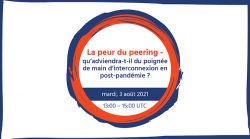 L’objectif de cette séance était sur l’impact de la pandémie COVID-19 sur l’organisation des forums de peering à travers le monde. Nous aimerions comprendre comment des activités telles que les bilatérales et les sociales de peering, qui sont d’habitude fortement dépendantes des rencontres en présentiel, vont désormais évoluer, et si des événements hybrides (combinaison de présentiel et de virtuel) deviendront la nouvelle norme.