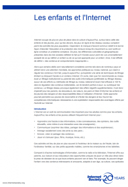 Internet occupe de plus en plus de place dans la culture d’aujourd’hui, surtout dans celle des enfants et des jeunes, pour qui les devoirs, les jeux en ligne et les réseaux sociaux comptent parmi les activités les plus populaires. Cependant, le manque d’accord commun relatif à la bonne façon d’aborder l’éducation et la protection des mineurs lorsqu’ils s’expriment ou sont actifs en ligne constitue un problème complexe. De plus, les différences culturelles et géographiques présentes dans les lois sociales reflètent le fait qu’il n’existe aucun point de vue universellement accepté de ce qui définit un enfant ou de ce qui est approprié pour un enfant. Ainsi, il est difficile de définir « des contenus et comportements inappropriés ».