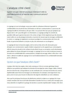 Les partisans de l’analyse côté client considèrent cette technologie comme une solution pour identifier les contenus répréhensibles dans les environnements E2EE. Cependant, ce document a expliqué comment la CSS enfreint l’accord de confiance du cryptage de bout en bout et les dangers qu’elle présente. Pour plus d’informations sur le fonctionnement de la CSS et ses défauts inhérents, la fiche d’information de l’Internet Society sur l’analyse côté client peut servir de ressource pour des discussions politiques détaillées. Nos informations sur ce qu’est le cryptage et sur la manière dont il contribue à la sécurité et à la confidentialité peuvent également constituer une ressource précieuse.