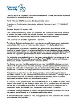 The Internet continues to evolve at a pace that has exceeded virtually all expectations, and defied most predictions. It continues to amaze us in terms of the technology, what it allows users to do and to create, and in the way that it empowers users and communities around the globe. And while the Internet’s emergence was unpredictable, it was not an accident, but rather the outcome of vision, commitment, collaboration and the faith or perhaps courage to let it develop organically.
