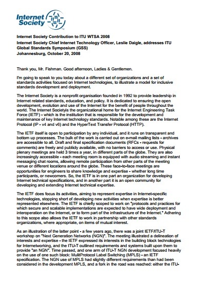 The key conclusions I would offer this forum from the IETF and the Internet Society’s experience: