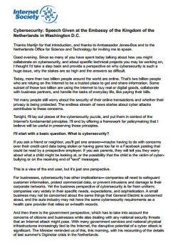 Speech Given at the Embassy of the Kingdom of the Netherlands in Washington D.C