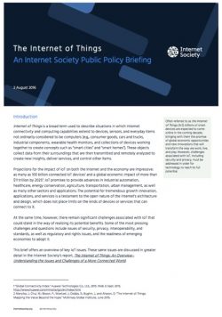 This brief offers an overview of key IoT issues. These same issues are discussed in greater detail in the Internet Society’s report, The Internet of Things: An Overview–Understanding the Issues and Challenges of a More Connected World.