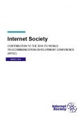 The Internet Society (ISOC), a Sector Member of the International Telecommunication Union Development Sector (ITU-D), is pleased to submit this contribution to the sixth World Telecommunication Development Conference (WTDC-14). We are committed to collaborating with partner organizations in every region of the world in order to increase access to the Internet and spur innovation, economic and social development. The Internet Society believes in a global, inclusive Internet that enables participation and innovation from all parts of the world. We look forward to participating in the WTDC to set priorities for the work of the Sector for the next four years.
