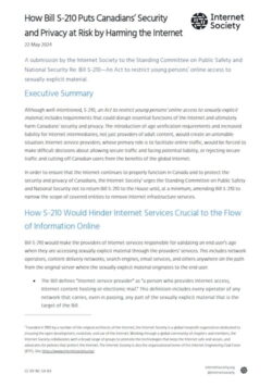 Although well-intentioned, S-210, an Act to restrict young persons’ online access to sexually explicit material, includes requirements that could disrupt essential functions of the Internet and ultimately harm Canadians’ security and privacy. The introduction of age verification requirements and increased liability for Internet intermediaries, not just providers of adult content, would create an untenable situation. Internet service providers, whose primary role is to facilitate online traffic, would be forced to make difficult decisions about allowing secure traffic and facing potential liability, or rejecting secure traffic and cutting off Canadian users from the benefits of the global Internet.