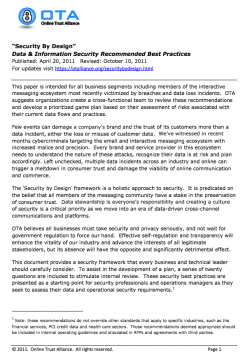 This paper is intended for all business segments including members of the interactive messaging ecosystem most recently victimized by breaches and data loss incidents. OTA suggests organizations create a cross-functional team to review these recommendations and develop a prioritized game plan based on their assessment of risks associated with their current data flows and practices.