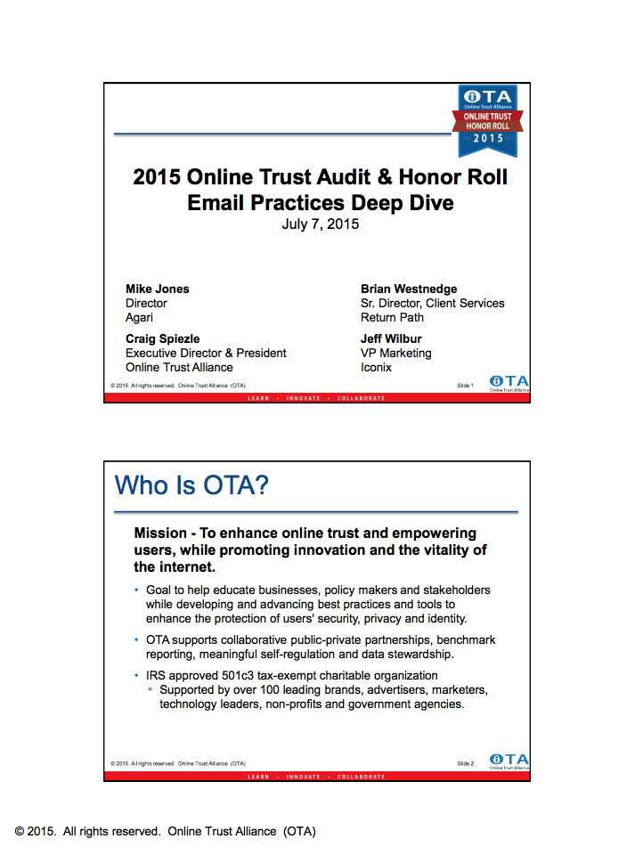 With the goal to drive adoption of best practices allowing all companies the ability to access their status and optimize their scores, OTA published the 2015 criteria in mid-February 2015 on the OTA website and external facing newsletters.